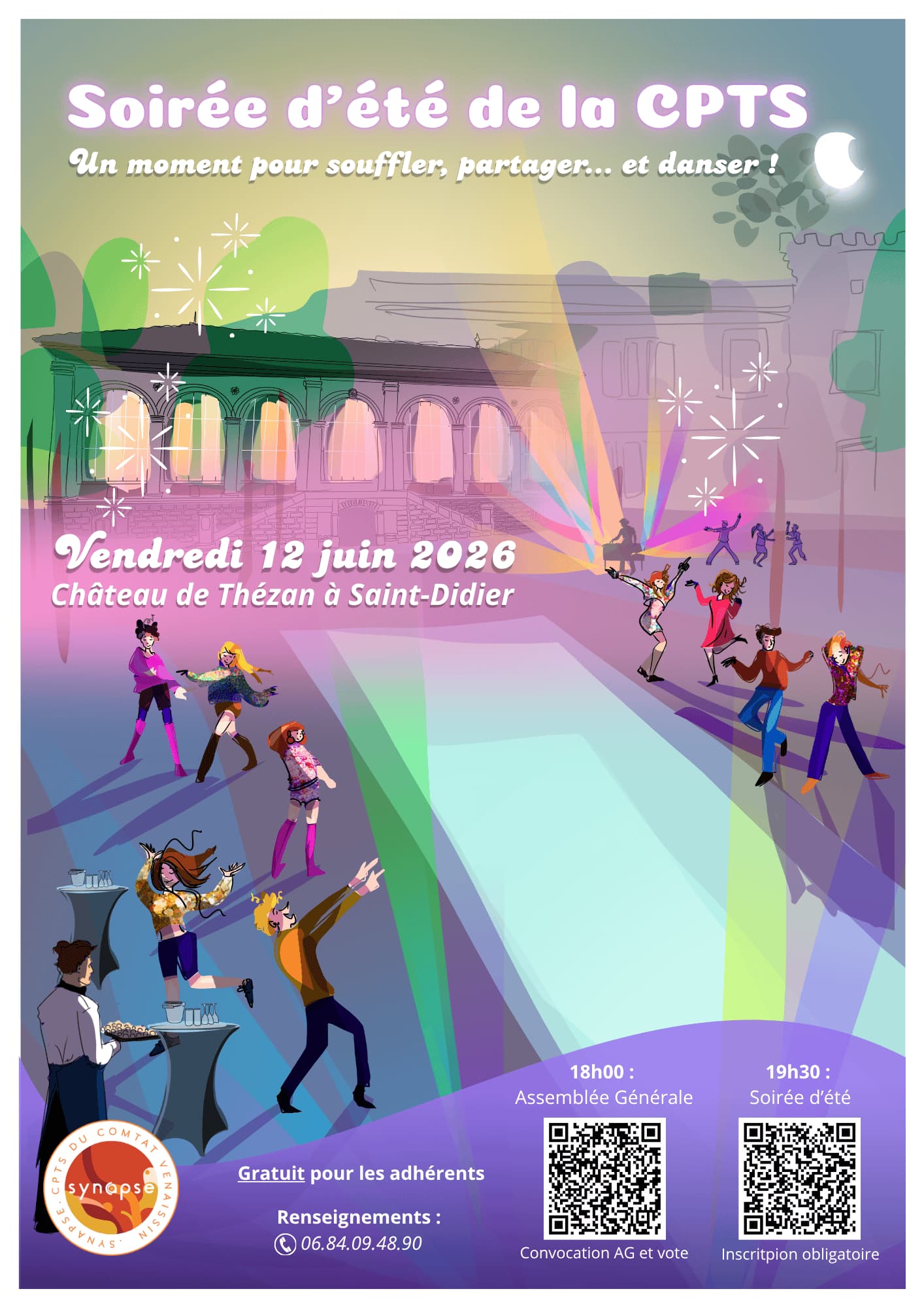 Chaque année, après l’Assemblée Générale, la CPTS Synapse prolonge la soirée dans une ambiance festive et décontractée. Cette tradition bien ancrée, c’est notre soirée d’été et l’édition 2026 aura lieu le vendredi 12 juin.