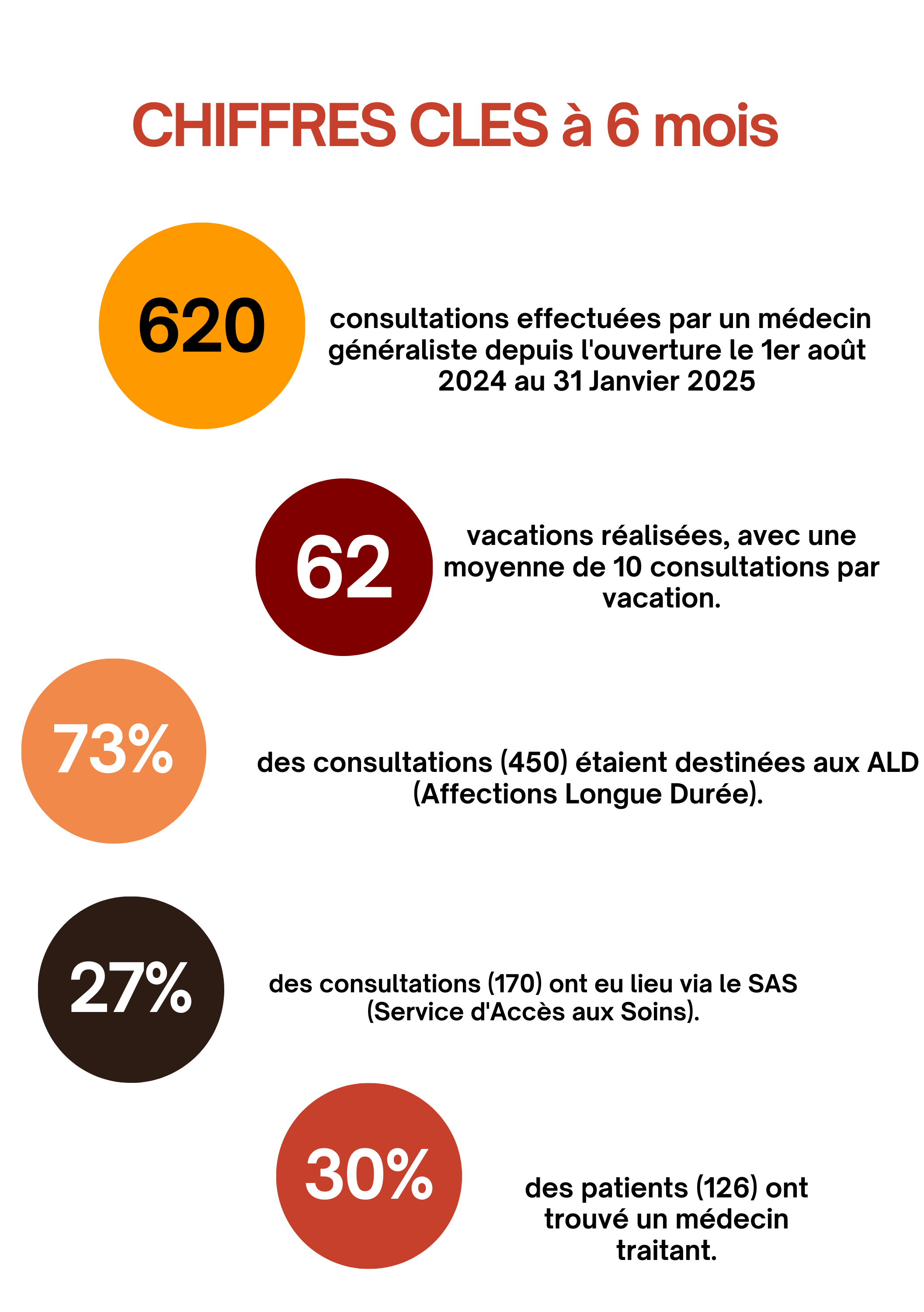 En seulement six mois, le centre a effectué un total de 620 consultations, dont 170 via le Service d’Accès aux Soins (SAS).