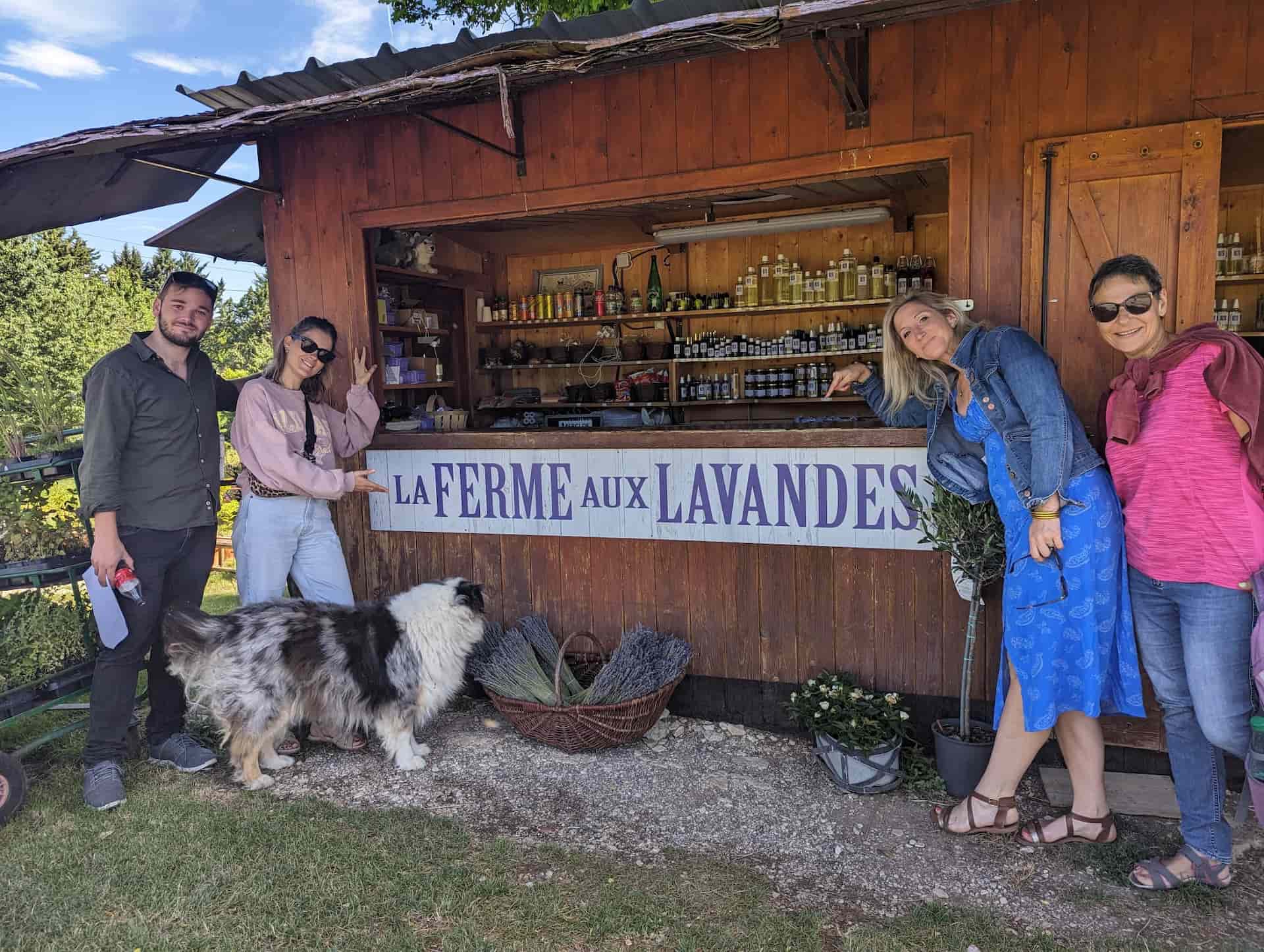 Vers midi, tout le monde a rejoint la Ferme de la Maguette pour un agréable repas en plein air au milieu des lavandes et des oliviers.